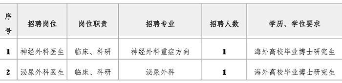 因医院发展需要,现面向社会招聘海外毕业博士研究生2名,有关事项公告如下。