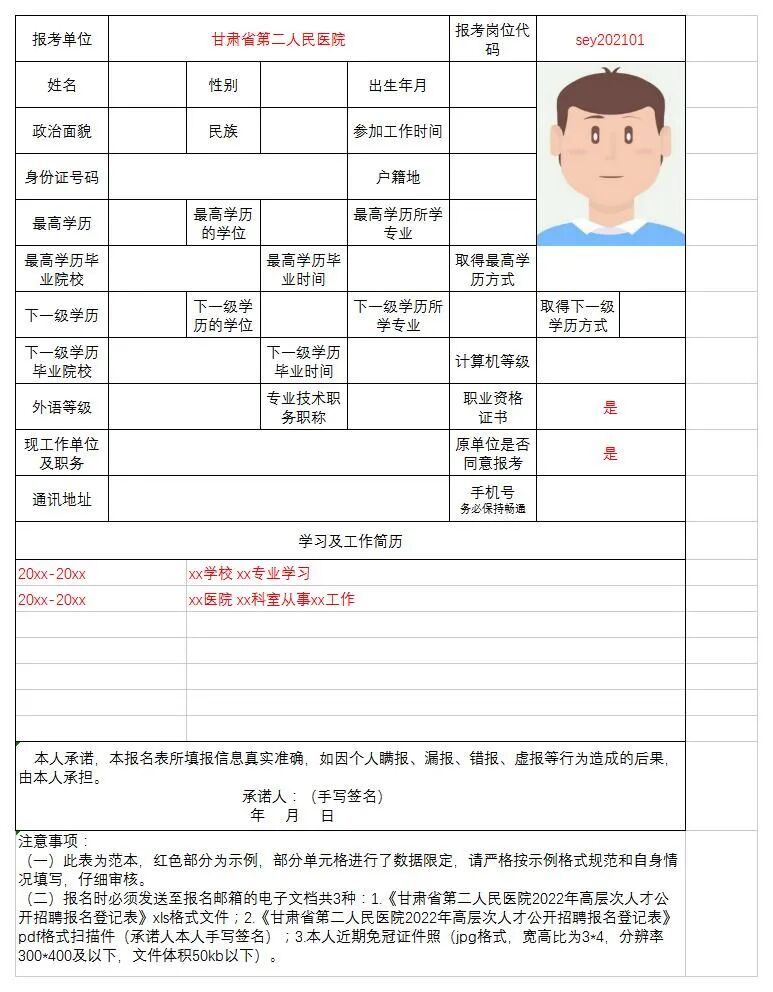 2.《甘肃省第二人民医院2022年高层次人才公开招聘报名登记表》